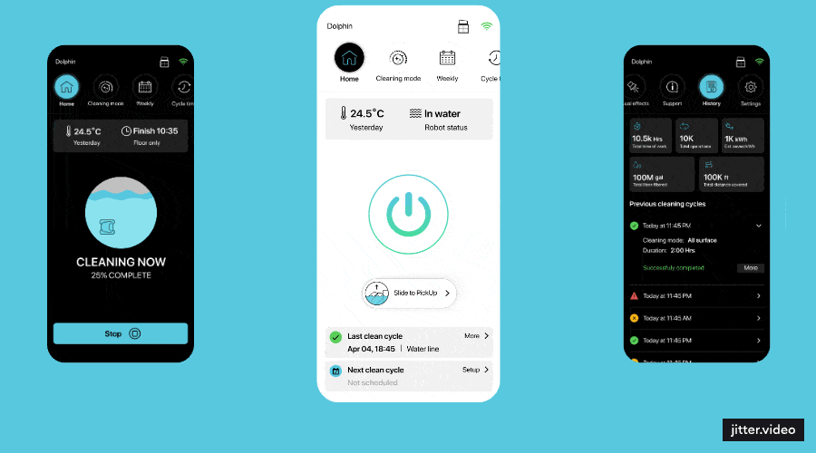 Maytronics One provides seamless remote control of your Dolphin robot and pool equipment through a single, intuitive interface. Easily schedule cleaning cycles and receive real-time alerts to ensure your pool stays crystal clear with minimal effort.